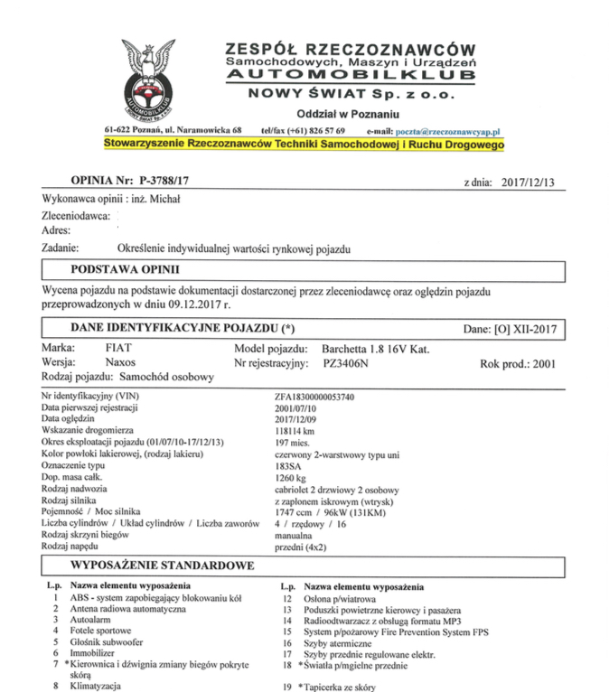 ... nowa wycena Barchetty :) przez ostatnie 12 miesiecy przebieg powiekszyl sie o 962km