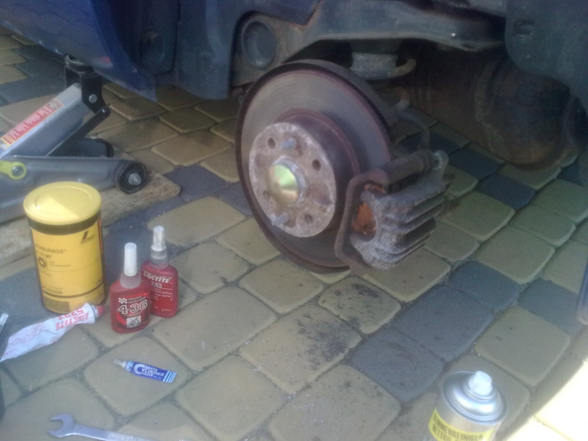 Klocki hamulcowe tył "przyspawane" do zacisków, tarcze rude, ponadto na prawej stronie zapieczony tłoczek