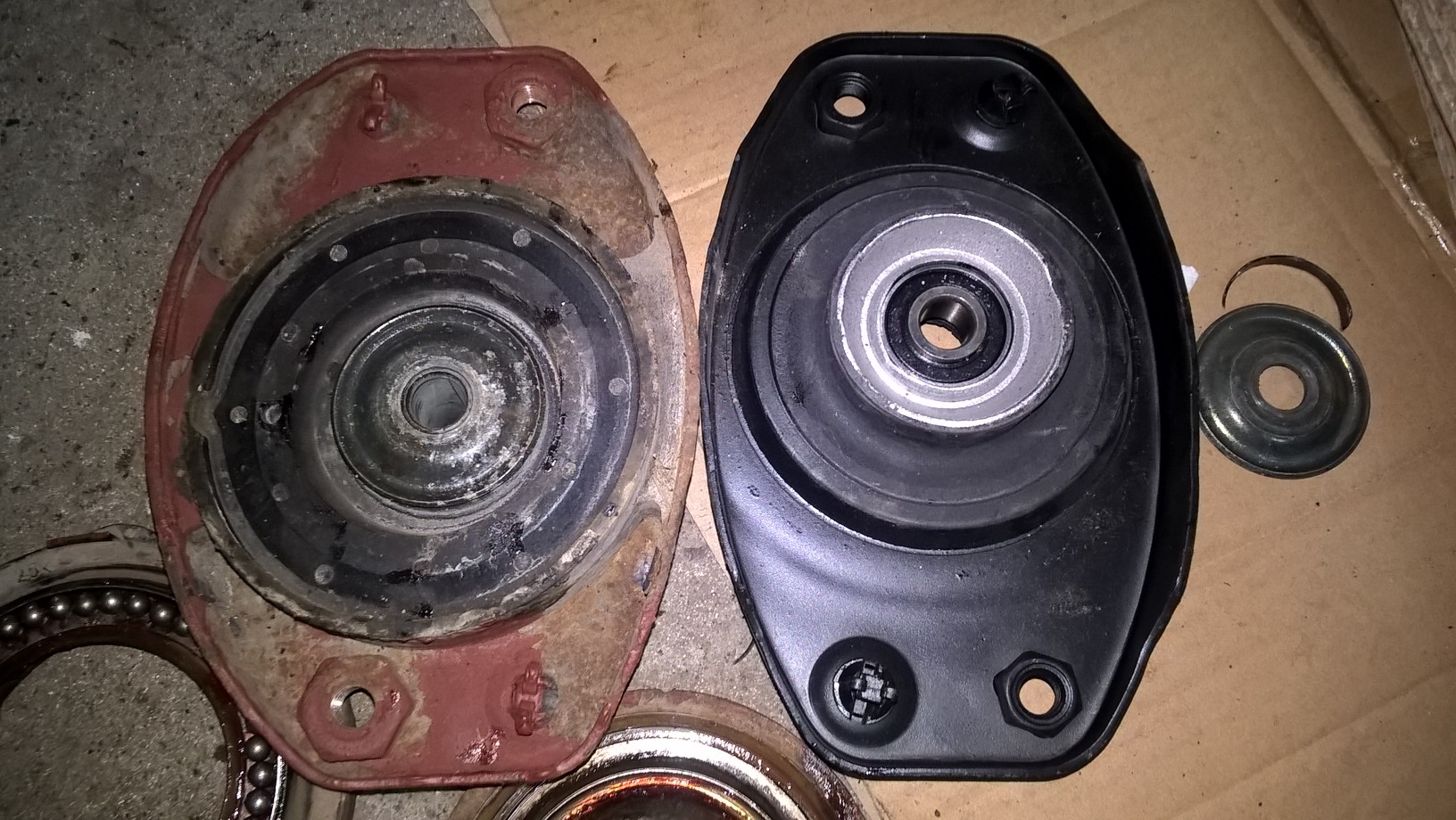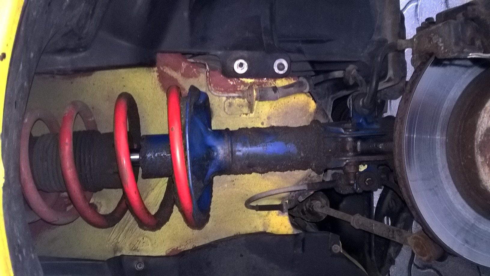 Jednak sam system ułożyskowania zupełnie nie pasował. Bieżnia z plastikowym mocowaniem sprężyny nie pasuje do nowego mocowania kolumny (pewno od Punto).