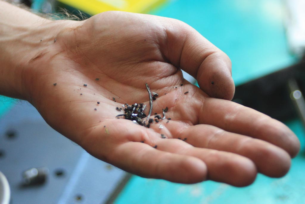 Czyszczenie ssaka miski olejowej ujawniło cały zbiór różnego rodzaju resztek i opiłków, głównie pozostałości zmielonej panewki.