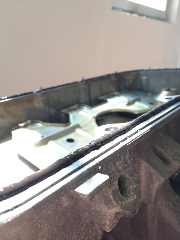 Sporo czasu spędziliśmy na czyszczeniu miski olejowej z nagaru olejowego. Potem dokładne uszczelnienie i montaż.