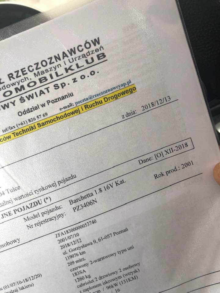 ... nowa wycena Barchetty :) przez ostatnie 12 miesiecy przebieg powiekszyl sie o 962km