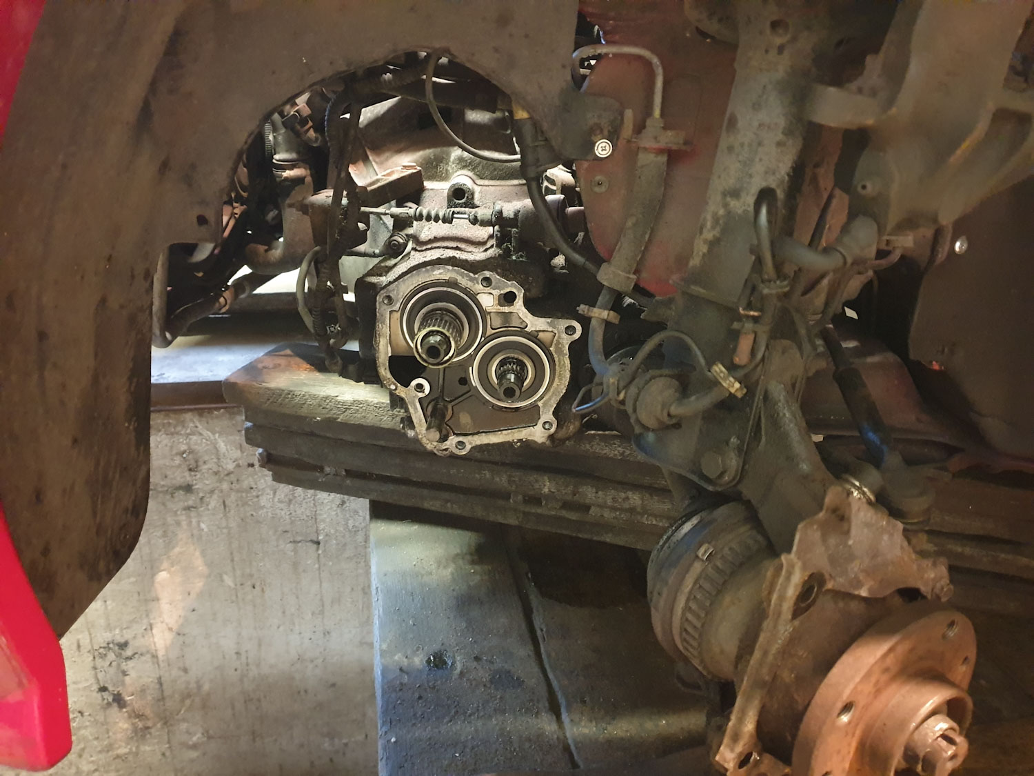 - cieknie skrzynia, prawdopodobnie uszczelka między silnikiem a skrzynią