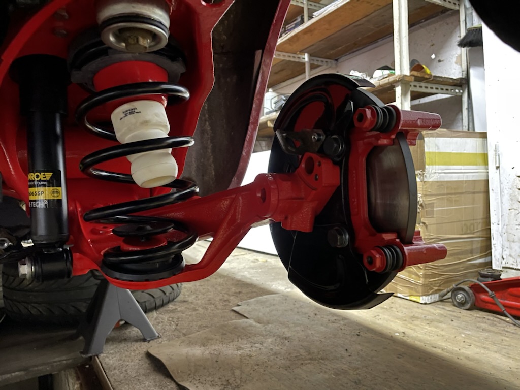 Tak się ucieszyłem, że go poskładałem, że nie mam zdjęć jak wygląda poskładany do końca... Wszystko co było przy belce zostało wymienione na nowe. Przewody hamulcowe, odboje, gumy a nawet podkładki i śruby. Belka została wypiaskowana i pomalowana tak jak wahacze i stabilizator. Dodatkowo zregenerowane i pomalowane są zaciski. Ten samochód wreszcie hamuje :szok :szok :szok