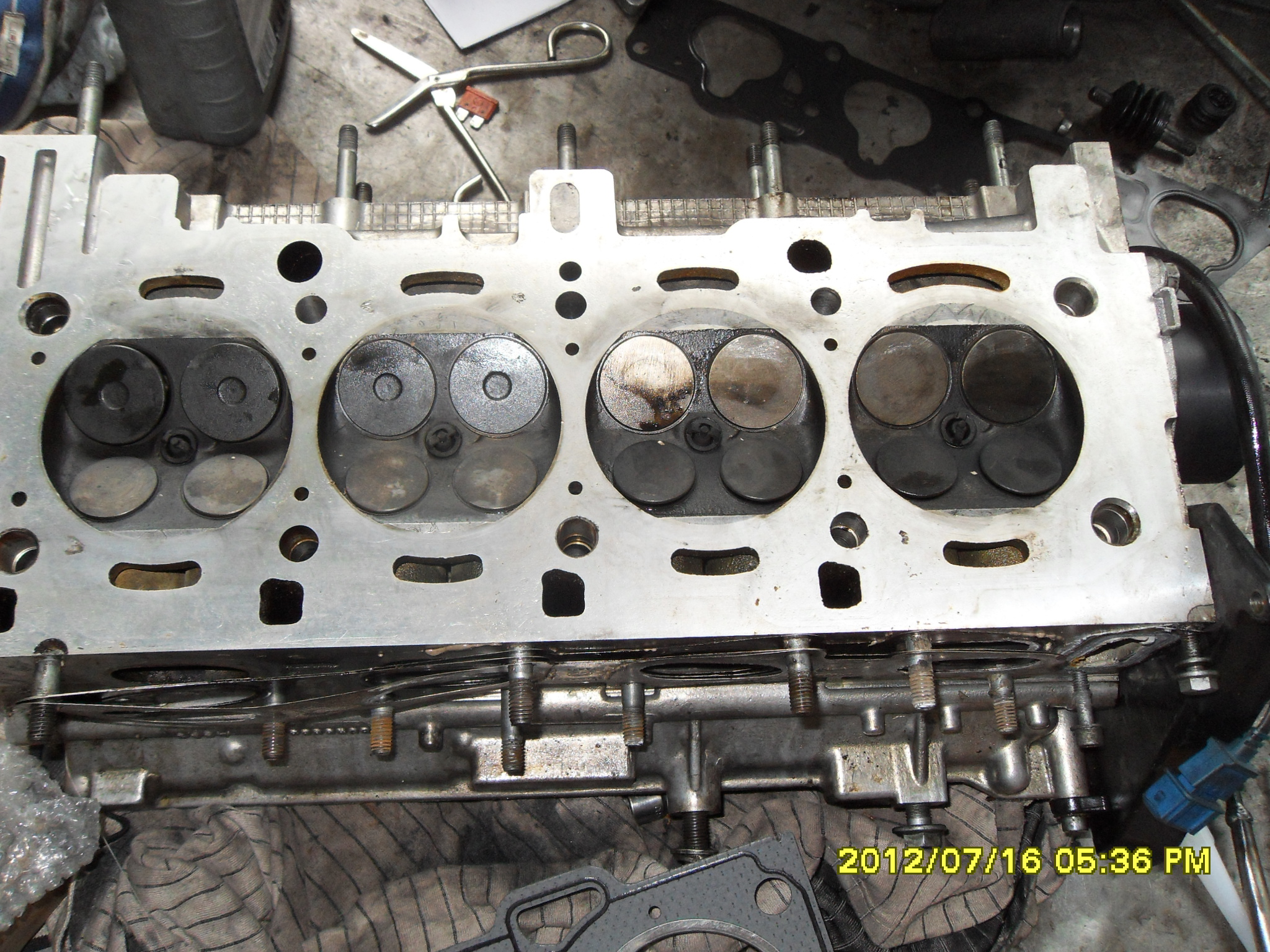 Najciekawsze w tym wszystkim było, że zawory na pierwszy rzut oka nietknięte - czyli jeśli to tłok uderza o głowicę to nie może być mowy o tym, że głowica jest za nisko (teoria z nadmiernym jej splanowaniem), bo wtedy to zawory by uderzały o tłoki.