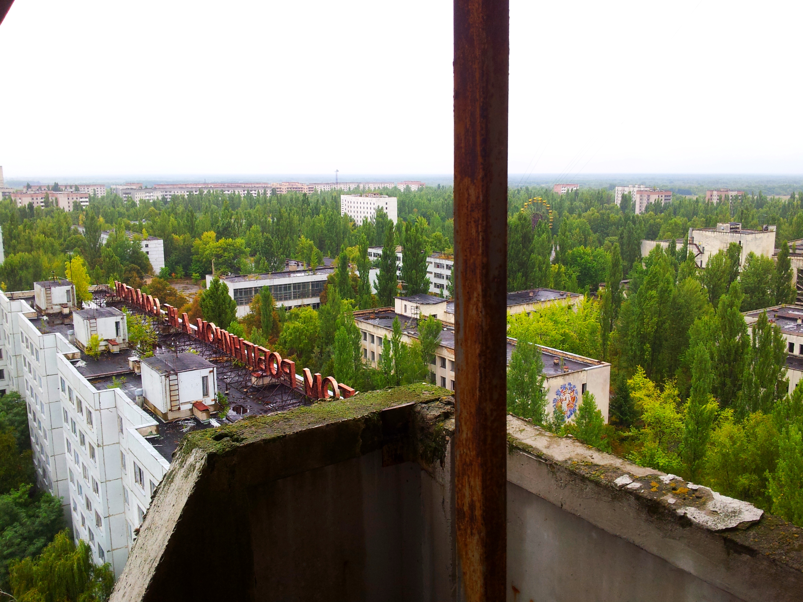 Panorama Prypeci z dachu 16-sto piętrowca...w tle oddalona o 3 km Elektrownia Jądrowa